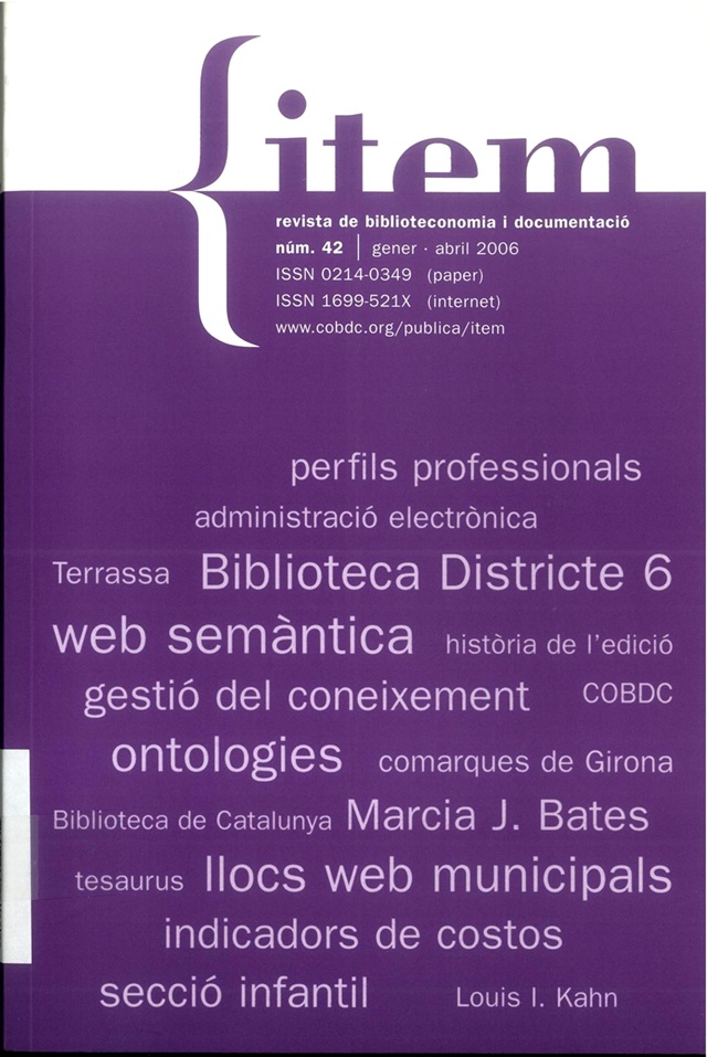 “Fonts per a l’estudi de la història del llibre i de les biblioteques a la Biblioteca de Catalunya” d’Anna Gudayol. ITEM, 42 de 2006, pàg. 129-149.