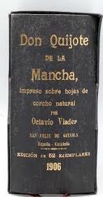 Y en los dorados del volumen Viader sustituía ‘la falsedad de las purpurinas por panes de oro de ley’. Se lanzaron 52 ejemplares, el primero dedicado al Rey Alfonso XIII y el segundo encuadernado en cuero repujado a mano. Cada ejemplar costaba entre 500 y 700 pesetas de la época. El Quijote de corcho se agotó y no tardó en cotizarse a precios elevados: en 1942, según el librero Palau, se tasaba en unas tres mil pesetas”.