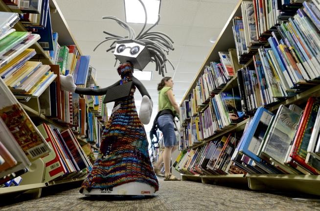 BiblioBot: és una mena de robot per treballar amb nens autistes i altres, creat a les biblioteques de Longmont (Colorado-USA), molt interessant. Però crec que és millor que feu una ullada al vlok Infobibliotecas , on ho expliquen molt bé.