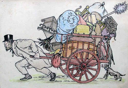 També hi anava l’Aiguacuit. Hi venia llibres de tota mena i era dels que hi feien més negoci. Era alt i secardí. Tenia la veu grossa i semblava ferreny. Era, però, molt bona persona. Duia sempre una brusa blava, la qual va substituir, més endavant, per un vestit de vellut; indumentària que, durant molts anys, fou com una mena d’uniforme oficial del llibreter de vell.”
