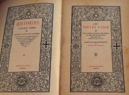 Mai més podré ensumar aquella olor de paper vell, de pols; no podré tornar a remenar aquelles piles de llibres, amuntegats durant anys, enterrats entre gravats, mapes i manuscrits, esperant ser exhumats. En aquell espai mort i viu alhora, hi vaig anar adquirint llibres que calmaven la meva compulsiva curiositat. De mica en mica vaig comprar cadascun dels volums de les Històries d’altre temps: Textes catalans antichs triats entre les produccions de caracter novelesch escrites en nostra llengua o en ella traduhides durant els segle XIV a XVII (1), editats pel bibliòfil Ramon Miquel y Planas i impresos per Fidel Giró, des de l’any 1905. Però quan la llibreria va abaixar les seves portes, me’n faltaven dos que no vaig saber trobar: Les Faules d’Isop i les Faules isòpiques (2).