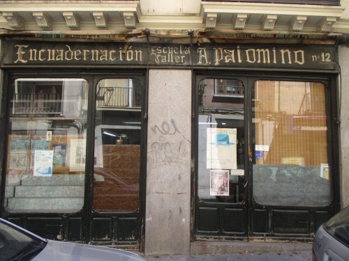 Vaig pel carrer Fuentes, trobo el taller on enquadernava en Palomino, al mateix lloc hi ha una tenda de materials per enquadernació, Amillo , i un taller d’enquadernació de llibres. En ambdós llocs m’atenen molt bé, faig fotos. En el taller una noia em diu que sap d’un altre lloc on fan i ensenyen enquadernació, em diu l’adreça i demà hi aniré a donar una ullada.