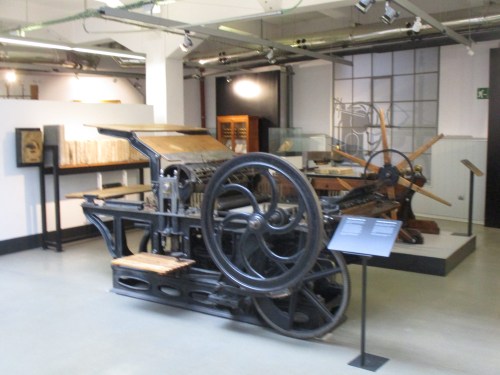 Dia 11 d’abril. A quarts de 10 he anat una altra vegada a la Librería Berceo i després, passejant, a un altre dels museus del Llibre i les arts gràfiques que aquí sí que tenen, la Imprenta Municipal Artes del Libro, d’entrada gratuïta, amb unes quantes màquines, eines i llibres per passar una bona estona; també hi fan tallers per a adults i joves, exposicions diverses i més coses.