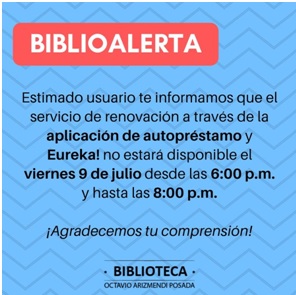 Biblioalerta: per anunciar algunes coses, fet per la Biblioteca de la Universidad de la Sabana ( Colombia). https://www.unisabana.edu.co/biblioteca/
