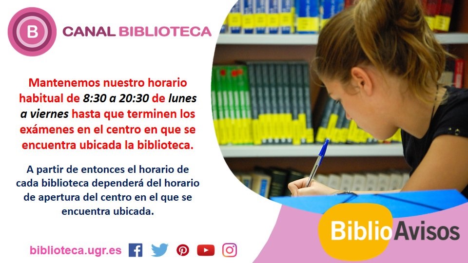 BiblioAvisos: mitjà utilitzat per la Biblioteca de la Universidad de Granada per avisos, notificacions, novetats, etc. https://twitter.com/bibliotecaugr?lang=bn