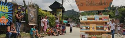 Bibliosilleta: una biblioteca itinerant que cerca promoure la lectura entre els joves del barri. En el municipi de Dos Quebradas, Risaralda ( Colombia).