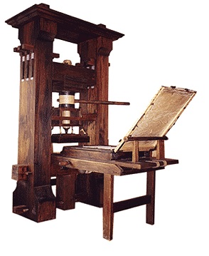 “ Com s’ha dit, la xilografia donà lloc a Europa a la invenció de l’ impremta, perfeccionada després de llarg i interessant procés amb els tipus movibles o caràcters de lletres soltes. Això esdevé el 1440 o el 1454, degut a Faust i a Gensfleisch, conegut per Gutenberg.