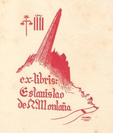 “ Els cognoms que no poden ésser interpretats gràficament són molts més que els que poden ésser-ho. Llavors és quan en l’ex-libris s’imposa la simbolització temàtica. El simbolisme s’expressa d’infinites maneres, i sempre el geni creador de l’artista es val d’allò que millor li sembla i troba més adient per a desenvolupar el seu pensament. Un símbol ha d’encloure la psicologia del titular de l’ex-libris, expressada i combinada decorativament amb l’ornament i la retolació. Podria citar-vos centenars d’ex-libris com a exemple; entre ells recordo ara el dels germans Casal i Vall, d’Andorra, en el qual són representats la Vall d’Andorra i un vell casal, amb la inscripcio: “ De l’antiga casa pairal – fem palau d’amor: bell casal”. El de Serafí Reig, també andorrà, en el qual hi ha un serafí recolzat damunt del bolet ou de reig, i la inscripció: “ Elevació d’esperit… i el paladar exquisit”. Un dels ex-libris de l’intel·lectual i bibliòfil lleidatà Estanislau de K. Montaña i Pradera representa un prat i una muntanya; però, com que l’interessat és aficionat als llibres de cavalleria, hi ha també l’espasa simbòlica i un cavall renillant, emmarcat tot dins una orla que li dóna l’aspecte heràldic d’un escut. I el d’en Puigsubirà, de Tàrrega, en el qual hi ha una figura nua esguardant, l’horitzó i un poblet que dorm al peu de l’alta muntanya, i que porta aquesta inscripció: “ Deu-me la terra alta, noble, sobirana!”.