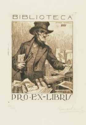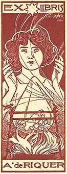 El segon, com especialitzat en la producció d’ex-libris, és Alexandre de Riquer. Altres artistes ham tingut preferències per aquest gènere: R. Casals i Vernis, E. Moyà, Víctor Oliva, Joaquim Renart Garcia, Ramon Borrell i Plà, etc. Una observació: ens referim solament a Catalunya.