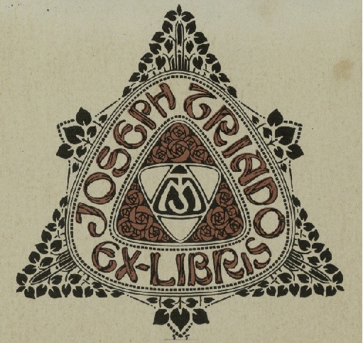 El primer dels artistes d’ex-libris és el dibuixant Josep Triadó, qui a la vegada és un dels iniciadors d’aquest moviment, i potser l’únic en el seu gènere d’ex-libris. Aquest gènere va obtenir, gràcies al seu entusiasme, molta difusió. Era un mestre de la il·lustració; el seu nom restarà a la història d’aquest art tan delicat com compromès.