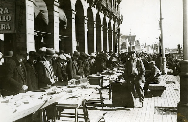 A milers desfilen els curiosos, els bibliòfils, els que volen comprar llibres per poc preu, les criatures que amb deu cèntims s’enduran a llurs cases un munt de setmanaris per a infants, les noietes que cerquen revistes de modes i novel·les blanques o roses, per poc preu, gent d’espardenya i de barret s’hi barreja davant les parades de llibres. Qui cerca un exemplar rar, qui, novel·les d’aventures, qui, clàssics, en resum, a la Fira del Llibre, al Paral·lel, hi ha compradors per a totes les matèries, les ciències, les arts, les especialitats, la història i la novel·la tenen compradors: