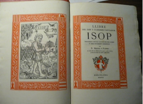Ningú es pensi ara que per ser feliç necessito Bíblies vulgates o Salustios d’Ibarra. No, no. Els gustos d’una bibliòmana, a diferència dels d’una bibliòfila, poden ser molt més raonables i modestos. Per començar, mai no compro un llibre que no em llegiré, o que no em llegiria. Tinc debilitats poc explicables, com tots els col·leccionistes. La més important són els llibres que parlen de llibres. Per això m’agrada tant tot el que va fer aquell bibliòfil barceloní que es deia Ramon Miquel y Planas. Els contes de bibliòfil que ja fa uns anys va vendre’m la meva amiga Anna Balaguer deu ser un dels llibres que més he mirat de la meva vida. O les Faules d’Isopque ell va editar l’any 1908, en paper de fil, enquadernat en pell vermella rematada per aquell escut daurat de Catalunya.