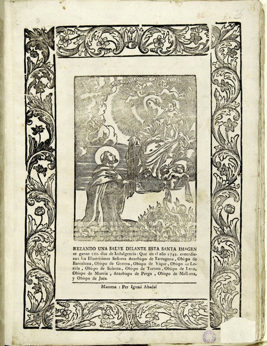 Bona part del fons de matrius i estampes dels Abadal es conserva a la Unitat Gràfica de la Biblioteca de Catalunya, que el va adquirir el 1924, mostra de l’interès que tenia per les matrius de gravat la institució des de ben aviat. Dins aquest fons han arribat fins a nosaltres tres matrius del segle xvi, reaprofitades posteriorment al seu dors -gràcies a això se salvaren-, que constitueixen raríssims exemples de planxes d’Incunables, és a dir matrius de pàgines de text en lletra gòtica, gravades en un sol bloc de fusta: es tracta de dues planes de beceroles i una de preceptes de l’Església catòlica.