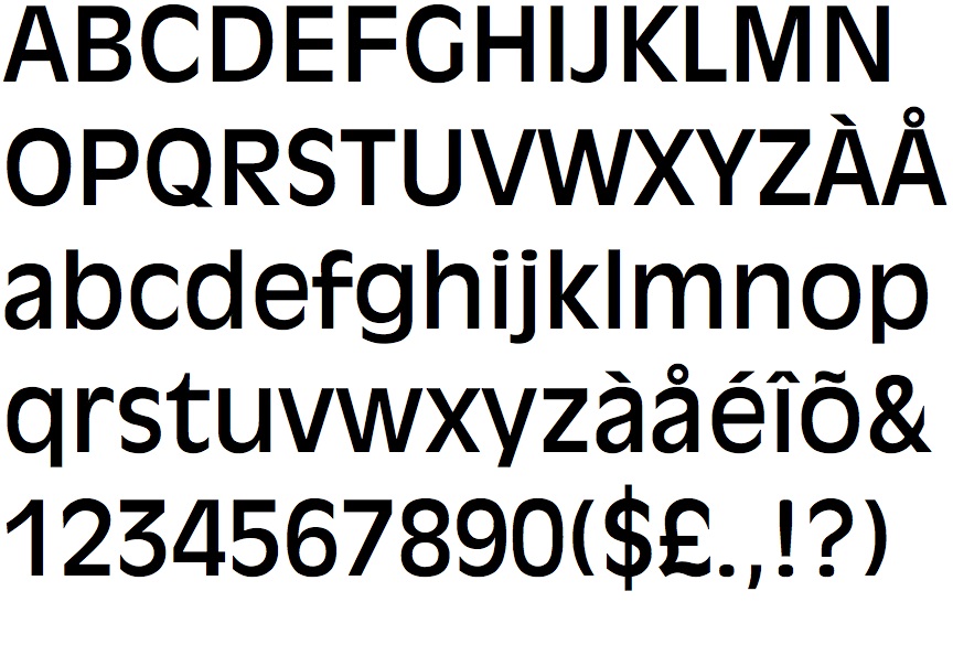 –Abadi: Dissenyada el 1987 pel dissenyador malai Ong Chong Wah, aquesta tipografia comparteix característiques de tipus humanistes com la Gill Sans amb altres estils més lineals i rígids. Aquesta barreja la converteixen en una sense serif molt versàtil, amb una aparença molt afable i alta dosi de llegibilitat reforçada per la gran altura de la “x”. La versió itàlica posseeix un caràcter tal, en estar relacionada amb les romanes, que pot ser emprada independentment. La seva gran varietat de pesos, juntament amb la versió condensada, la fan molt útil per a una àmplia gamma d’aplicacions com a titulars, packaging, publicitat, televisió i fins i tot en petits blocs de text.