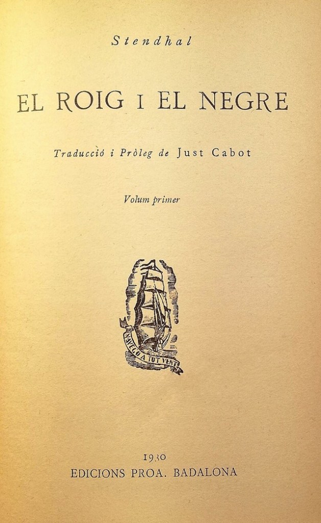 Just Cabot va traduir, entre altres obres, El Roig i el Negre (Le Rouge et le Noir) de Stendhal, publicada a Badalona l’any 1930