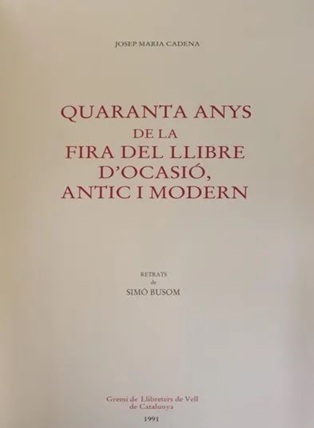 Un dels seus llibres: Quaranta anys de la Fira del llibre d’Ocasió Antic i Modern amb retrats de Simó Busom d’un munt de llibreters de vell, no apareix ni a la Viquipèdia ni a la DHAC. Per saber sobre fires del llibre vell i dels llibreters de vell és d’allò més interessant.