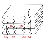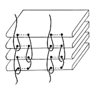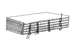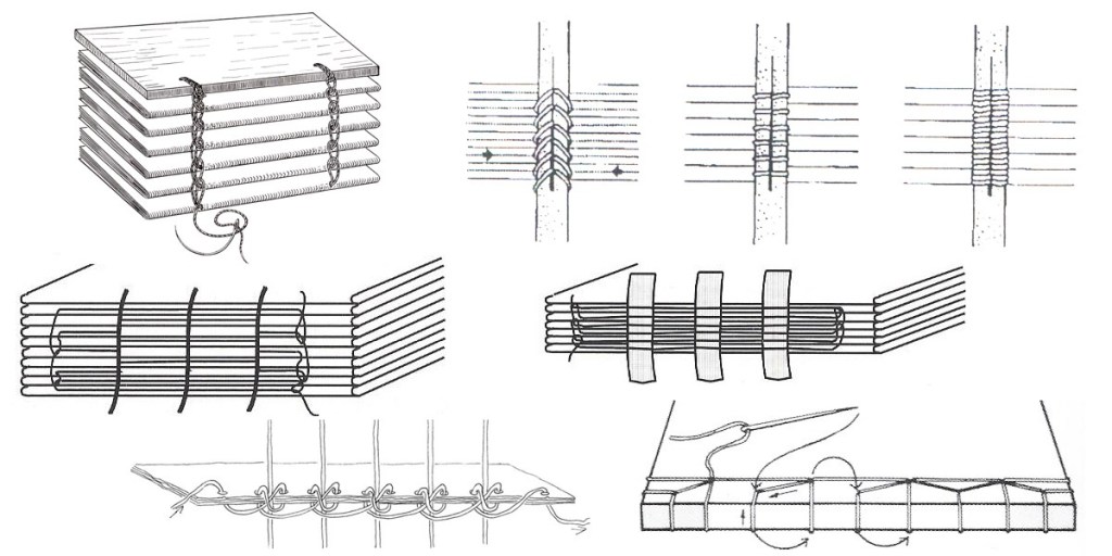 -Cadeneta d’un fil: Cosit sense nervis que utilitza un sol fil per a tot el llibre, el qual recorre tot el llom del quadern entrant i sortint per cada forat del cosit i forma una baga que s’enllaça amb la baga del quadern precedent.