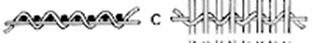 –Cadeneta cosida per sota alterna: Cadeneta per fer sobre els filferros d’un sedàs per a paper o sobre els fils d’una capçada, etc. És com una “cadeneta passada per sobre alterna” només que el fil comença la trama per sota del fil horitzontal.