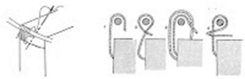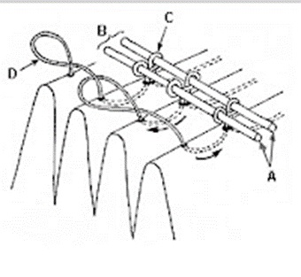 –Cadeneta sobre fil fix: Cadeneta per fer sobre els filferros d’un sedàs per a paper o sobre els fils d’una capçada, etc. És a dir, sobre qualsevol “fil base”.