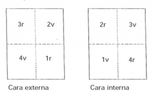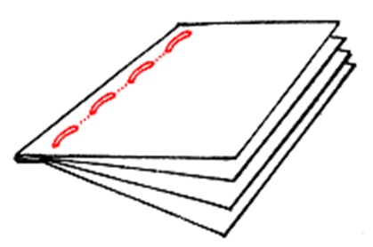–Cadeneta a dos quadernets: Mètode de cosit amb cadeneta on es fa servir un sol fil i va cosint els quaderns de dos en dos.