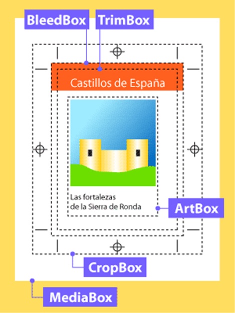 –Caixa d’impressió: 1. Caixa, rectangle i text que l’ocupa. 2. Té quatre marges (superior, inferior, lateral esquerre i lateral dret), El que en queda fora són els marges. Sol ser rectangular o quadrada. També se l’anomena “taca”, “caixa tipogràfica” o “caixa de composició”.