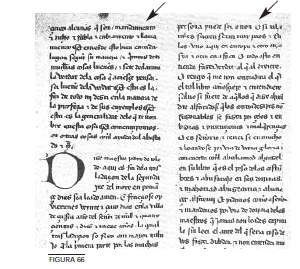–Caixa de justificació: Espai rectangular format per les quatre línies que delimiten la justificació pels quatre costats de la pàgina i que eventualment pot ser dividit en columnes. Nota: Aquest espai delimitat pot estar totalment o parcialment ocupat per l’escriptura.