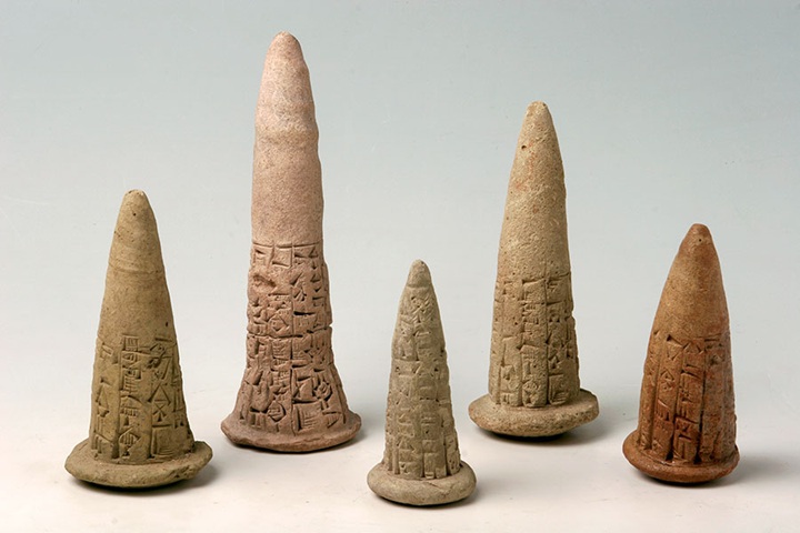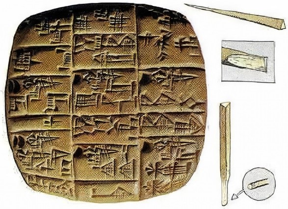 –Cuneïforme: 1. Escriptura que presenta caràcters en forma de falques triangulars. 2. Algunes de les primeres manifestacions d’escriptura cuneïforme es troben a Mesopotàmia al voltant del 3300 aC. Per escriure aquests signes, s’havia d’enfonsar un ‘stylus’ o estil triangular en una tauleta d’argila, que posteriorment es coïa per preservar-la.
