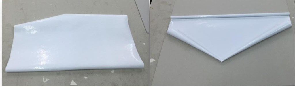 –Cuir acabat plàstic: Acabat de la pell amb productes plàstics, que es poden gofrar per fer textures sobre la pell per imitar altres materials o tipus de pells.