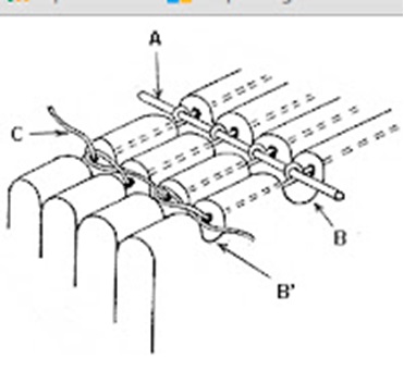 –Cadeneta de capçalera: Cadeneta que remata la vora de la malla metàl·lica d’una forma per fer paper.