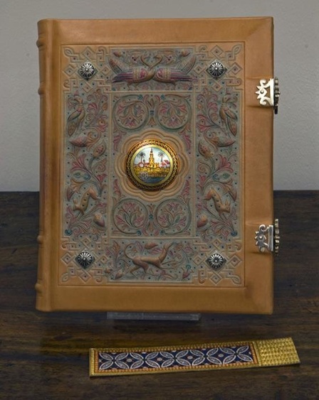 –Cuir carmesí: També s’anomena Damascè o Constantinoble. Les enquadernacions fetes amb ell són boniques i magnífiques en aparença i recents; però, a més d’estar subjectes a tots els efectes que acabem d’esmentar, tenen la peculiaritat de tacar malament els llibres adjacents enquadernats en pergamí.