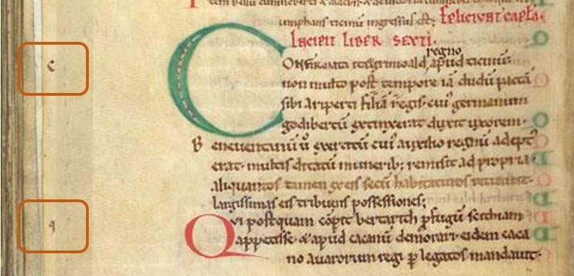 2. Qualsevol dels fragments o parts d’un mateix còdex escrit per un copista diferent que s’aprecia en les diferències escripturals. Les diferents mans d’un mateix còdex s’indiquen amb les lletres A, B, C, etc.