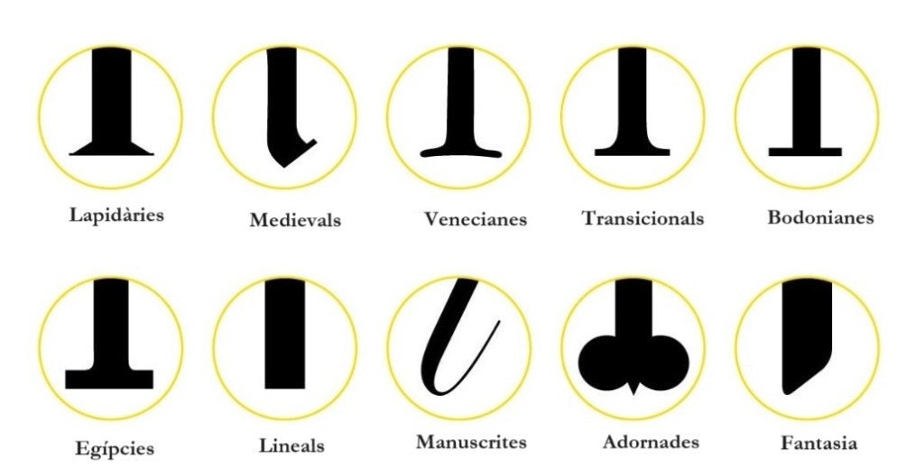 –Madera: Lletres també anomenades Woodtype, tenen el seu origen en els tipus de fusta creats durant el segle XIX i que resultaven més barates i duradores que els tipus de metall, encara que la qualitat era menor. Es caracteritzen pels traços i l’ornamentació grotesca.