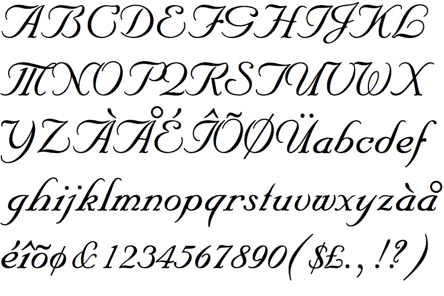 –Nuptial Script: Dissenyada prop de 1952 per l’equip de disseny d’Intertype sota la direcció d’Edwin W. Shaar, es tracta d’una tipografia cal·ligràfica amb un cert toc informal creada específicament per a invitacions de casament. Està inspirada en les tipografies cal·ligràfiques angleses combinades amb les capitulars manuscrites italianes. Ideal per a invitacions i targetes que requereixin una gran elegància i encant.