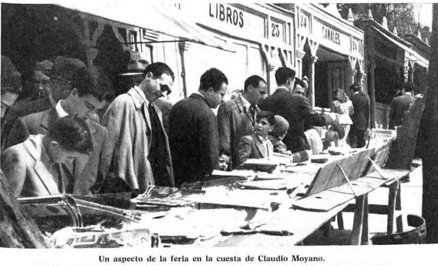 Ahora tiene aquí, en la Cuesta, su puesto y no desde ayer precisamente, sino desde el año 1934, disfrutando, como todos los demás libreros de Claudio Moyano, solamente de tres días de asueto al año, el 1 de enero, el 18 de julio, y el primero de mayo, festividad de San José Obrero.