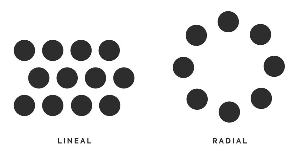 –Superposició: Principi físic que implica posar alguna cosa sobre una altra cosa, cosa que passa en tots els aspectes de la naturalesa dels objectes. Com a concepte de disseny gràfic, s’interpreta com l’acció deliberada de combinar diferents figures, de manera que ocupin parcialment o totalment el mateix eix de profunditat per produir una diferència en l’ordre jeràrquic. Perquè aquesta relació sigui fàcilment distingible, l’opacitat de les superfícies és un factor rellevant, ja que a les figures delineades pot resultar confús, igual que a les capes d’una composició d’imatges si presenten el mateix nivell de transparència.