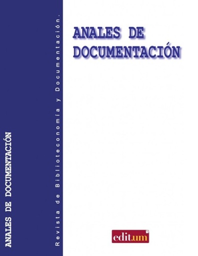 –Anales de Documentación: Revista de biblioteconomía y documentación. Editum/Universidad de Murcia. Anualmente publica trabajos originales, traducciones y reseñas de cualquiera de los distintos sectores y especialidades de la gestión de información, biblioteconomía, documentación y archivísitca.