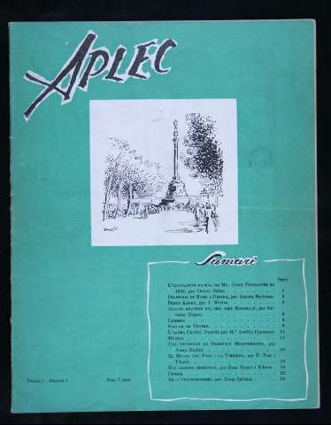 Aplec. Club de Divulgació Literària, Imp. Gràfiques Marina, Barcelona, 1952. Vol. 1, núm. 1 (abr. 1952). Només publiquen un núm.