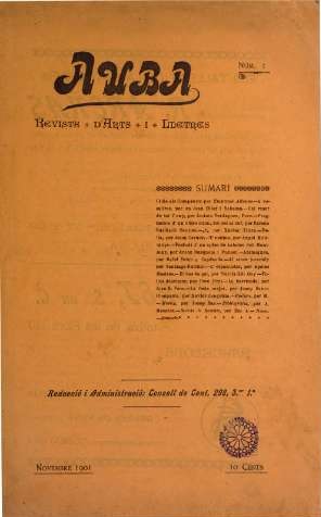 –Auba: revista mensual d’arts i lletres. Estampa de la Cassa [sic] P. De Caritat, Barcelona, 1901-1902. Dirigida per: Emmanuel Alfonso ; col·laboradors: P. Crehuet, A. Maseras, E. d’Ors, etc.