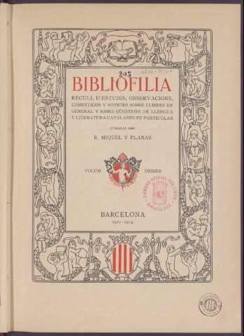 –Bibliofilia: Recull d’estudis, observacions, comentaris y notícies sobre llibres en general y sobre qüestions de… (1911-1921) -De Miquel y Planas, R (Ramon), 1874-1950. El vol. 1 es publica de juny 1911 a juny 1915, el vol. 2 de desembre 1915 a juny 1921 ; es publica en fascicles trimestrals però la designació numèrica i cronològica a les cobertes no sempre es correspon amb les designacions a l’interior.