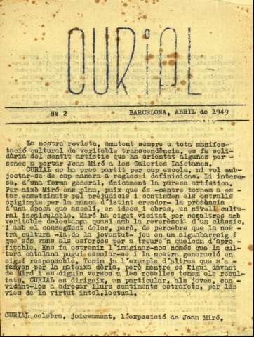 –Curial: Barcelona : [s.n], 1949-1950. Núm. 1 (feb. 1949)-maig/set. 1950. Revista literària de joventut. Redactors: Joan F. Cabestany, Antoni Comas, Albert Manent, Joaquim Molas i Miquel Porter. Col·laboradors: Salvador Espriu, J. V. Foix, Ferran Soldevila i Joan Triadú Text velografiat. Tenia un tiratge de cent a cent-cinquanta exemplars.