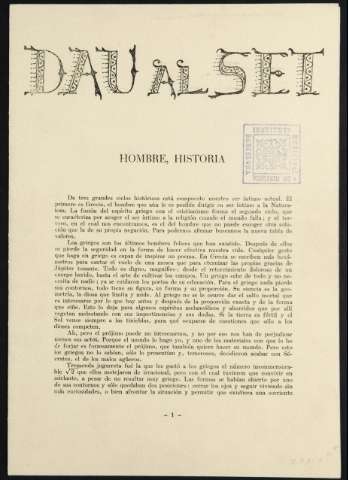 Vint-i-quatre pàgines a dues i tres columnes i cobertes. Redacció: Avinguda José Antonio, 818.. L’únic número que pogué sortir conté col·laboracions de J. Mettra, Octavi Saltor , Aurora Bertrana, Salvador Espriu, Maria Aurèlia Capmany, Josep Gudiol, P. Prat i Ubach, Rosa Ricart i Josep Iglésies. Revista literària, profusament il·lustrada, totalment en català.