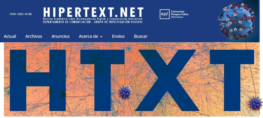 –Hipertext.net: és una publicació acadèmica d’accés obert (Open Access) especialitzada en la intersecció entre documentació digital i comunicació interactiva, tant en el context de la web com de la comunicació social en general i amb especial atenció a l’escenari iberoamericà. Hipertext.net es publica semestralment als mesos de maig i novembre. Univ. Pompeu Fabra. Des de 2003.