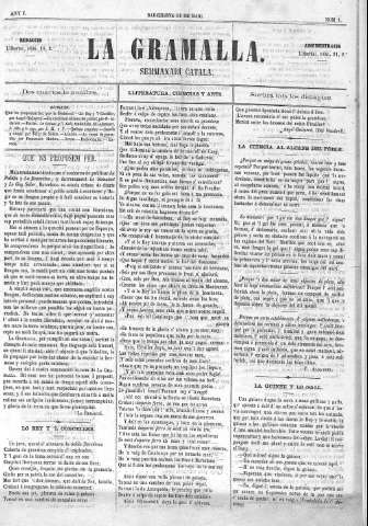 –La Gramalla: semmanari català : lliteratura, ciencias y arts.Ed. La Jove Catalunya/ Estampa de Lluís Fiol, Barcelona, 1870. Dirigida per: Francesc Matheu. Editada per: La Jove Catalunya