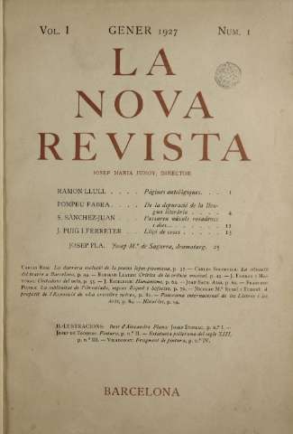 –La Nova revista: publicació mensual de literatura i d’art. Barcelona, 1927-1929. Dirigida per: Josep M. Junoy ; col·laboradors: P. Fabra, C. Riba, J. Puig i Ferrater, etc.
