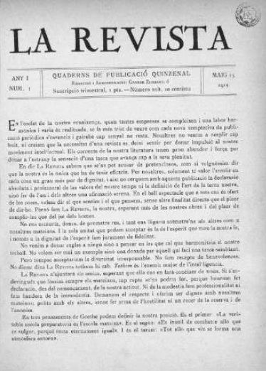 –La Revista: quaderns de publicació quinzenal. Tip. Altés, Barcelona, 1915-1936. Dirigida i fundada per: Josep M. López-Picó ; col·laboradors: J. Folguera, A. Plana, C. Riba, etc.