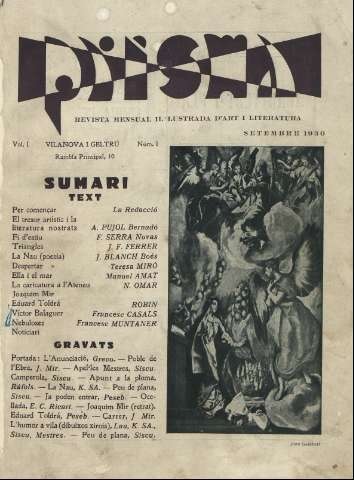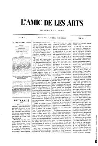 –L’Amic de les arts : Gaseta de Sitges (1926-1929),Imp. Ivern, Vilanova i la Geltrú, entre 1926 i 1929.Revista mensual il lustrada, de caràcter artístic i literari. Dirigida per: Josep Carbonell i Gener ; col·laboradors: J.V. Foix, M. A. Cassanyes, R. Planas, etc. ; il·lustradors: S. Dalí, J. Miró, E.C. Ricart, etc.