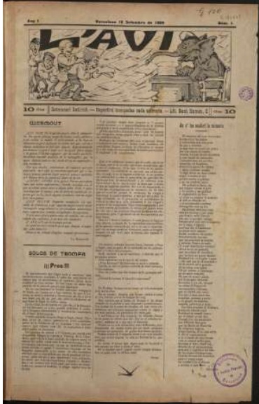El 12 de setembre de 1906 surt un altre “setmanari satirich”, que duu per títol L’Avi i anuncia que “repartirà trompades cada setmana”. Era un periòdic que reproduïa grans làmines en colors, a l’estil dels setmanaris satírics antics, com La Flaca o El Loro.