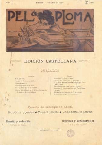 –Pèl & ploma. Tip. L’Avenç, Barcelona, 1899-1903. Propietari i director artístic: Ramon Casas ; director literari: Miquel Utrillo; col·laboradors: E. d’Ors, J. Maragall, A. Mestres, etc. ; il·lustradors: I. Nonell, Picasso, S. Rusiñol, etc. Impressor post.: Est. i Lit. Seix ; a partir de juny 1901: Thomas