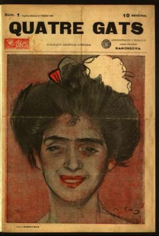 –Quatre Gats: publicació artística-literària. Est. De F, Badia, Barcelona, 1899. Dirigida per: Pere Romeu ; col·laboradors: M. Utrillo, R. Raventós, J. Pons i Massaveu, etc. ; il·lustradors: R. Casas, I. Nonell, S. Rusiñol, etc. A partir del núm. 13, l’impressor és: Impr. “La Publicitat”, de Tobella i Costa