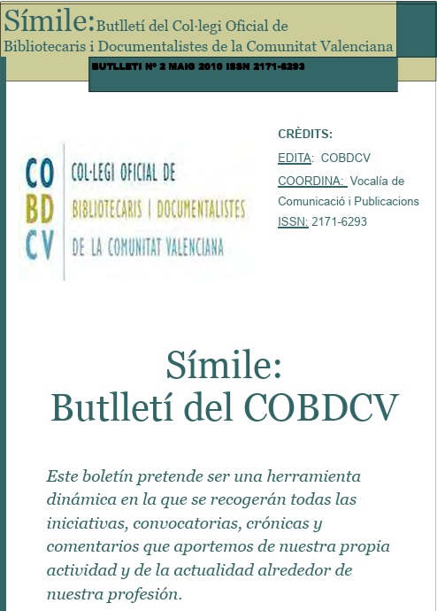 –Símile: és una revista divulgativa, promoguda pel COBDCV, en format digital i de lliure accés, adreçada a totes les persones interessades en els temes vinculats als professionals de la informació, amb particular atenció a l’àmbit de la Comunitat Valenciana. A València des de l’any 2010